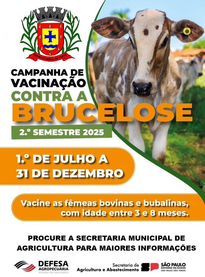 Para mais informações e orientações detalhadas sobre a Campanha de Vacinação Contra a Brucelose no 2º semestre de 2025, os produtores rurais devem procurar a Secretaria Municipal de Agricultura e Abastecimento de Espírito Santo do Turvo.